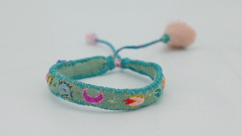Unikatowa bransoletka to połączenie rzemiosła, natury i elegancji, której nie znajdziesz nigdzie indziej. Każda bransoletka została wykonana ręcznie z najwyższej jakości naturalnych materiałów, takich jak len, wełna, jedwab, aksamit, kamienie szlachetne, szklane koraliki, nici jedwabne oraz sznurki i inne nici, co nadaje im niepowtarzalny charakter.
