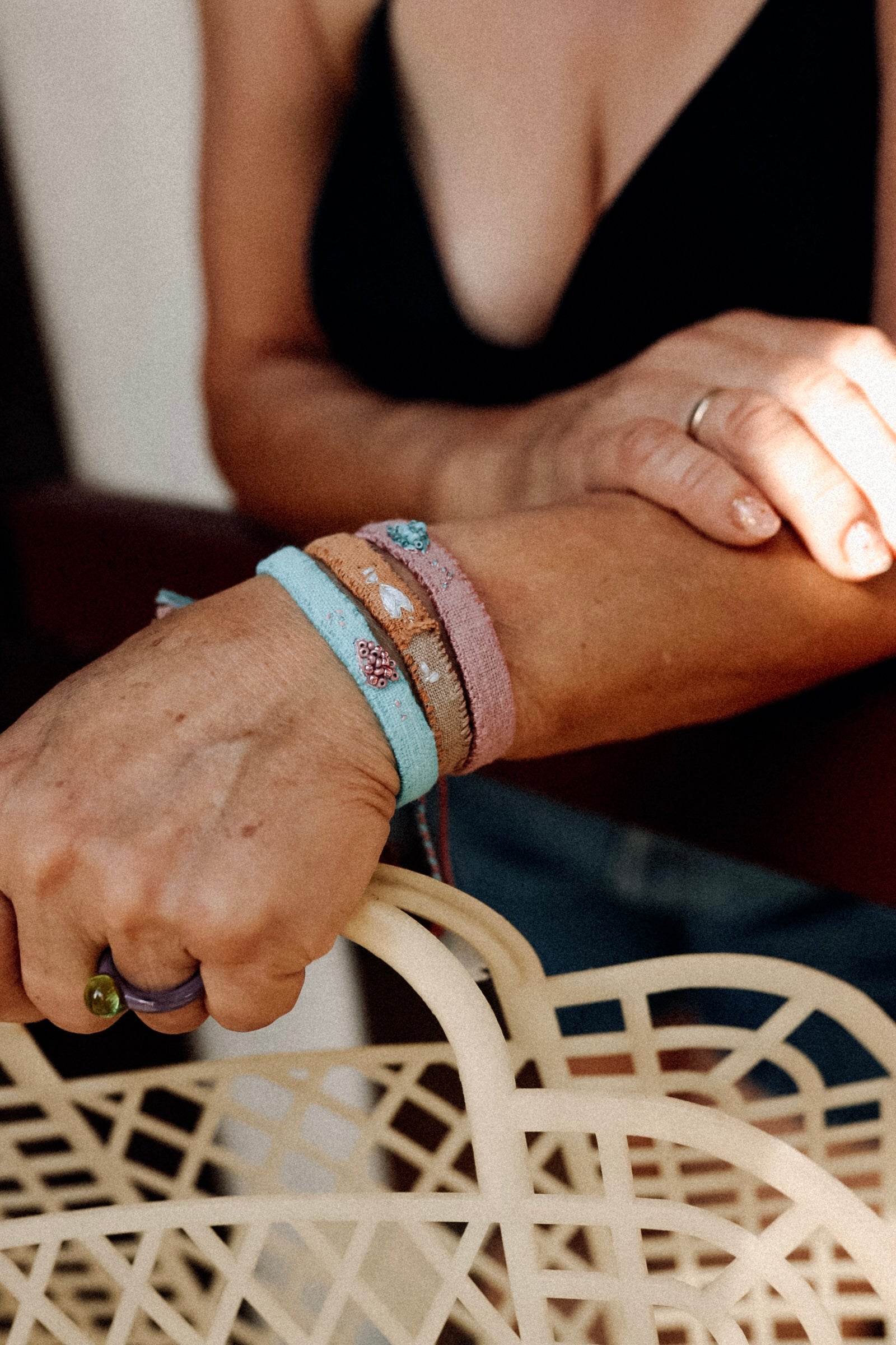 Unikatowa bransoletka SIENNA to połączenie rzemiosła, natury i elegancji, której nie znajdziesz nigdzie indziej. Każda bransoletka została wykonana ręcznie z najwyższej jakości naturalnych materiałów, takich jak len, wełna, jedwab, aksamit, kamienie szlachetne, szklane koraliki, nici jedwabne oraz sznurki i inne nici, co nadaje im niepowtarzalny charakter.