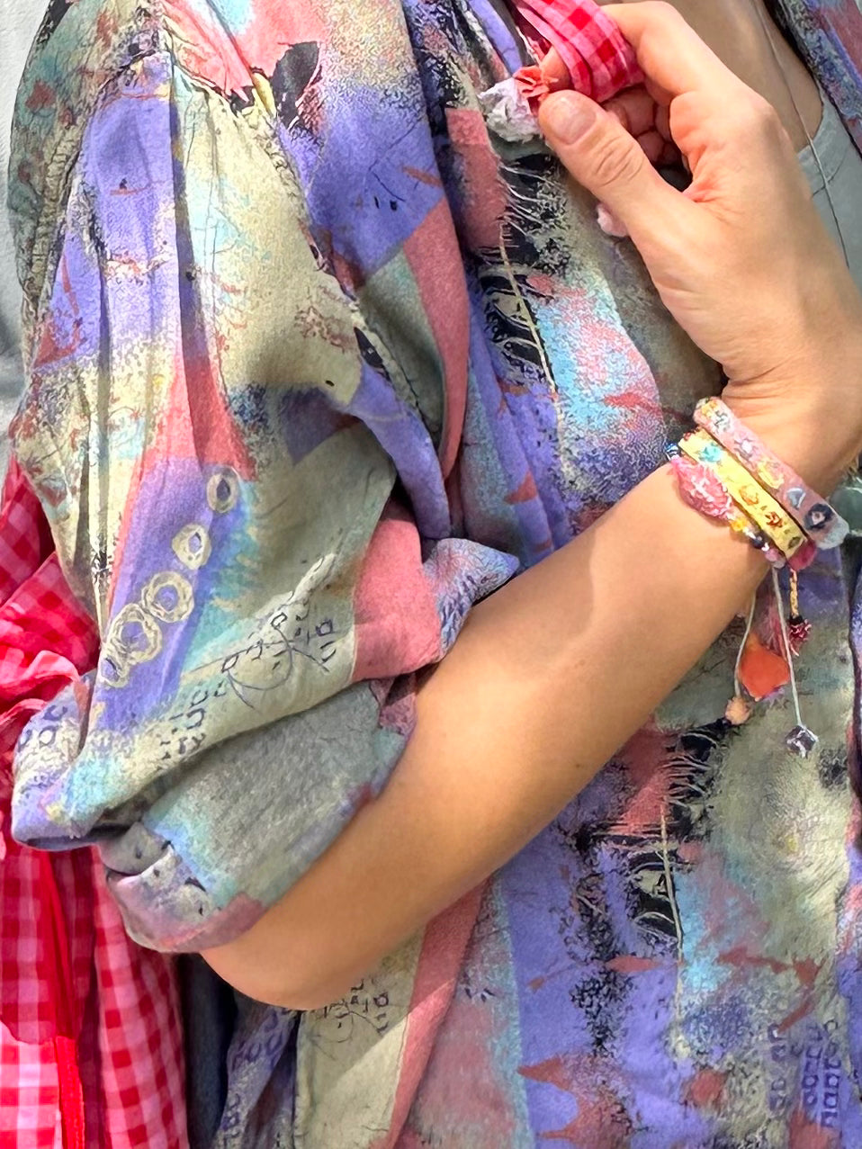 Unikatowa bransoletka to połączenie rzemiosła, natury i elegancji, której nie znajdziesz nigdzie indziej. Każda bransoletka została wykonana ręcznie z najwyższej jakości naturalnych materiałów, takich jak len, wełna, jedwab, aksamit, kamienie szlachetne, szklane koraliki, nici jedwabne oraz sznurki i inne nici, co nadaje im niepowtarzalny charakter.