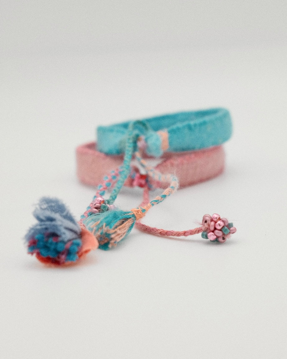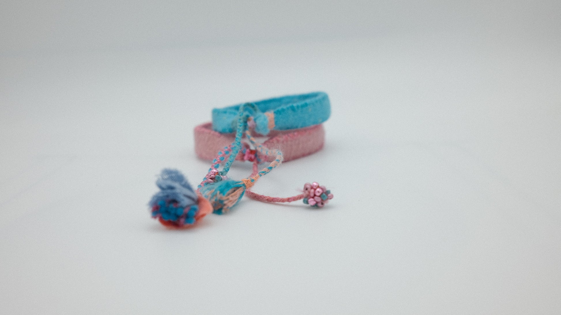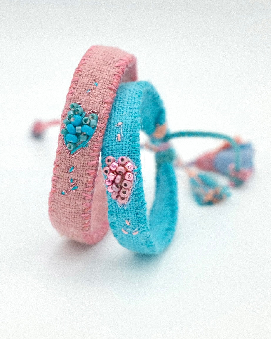 Niebieska z różowym serduszkiem (mniejsza bransoletka)-13 cm x 0,8 cm