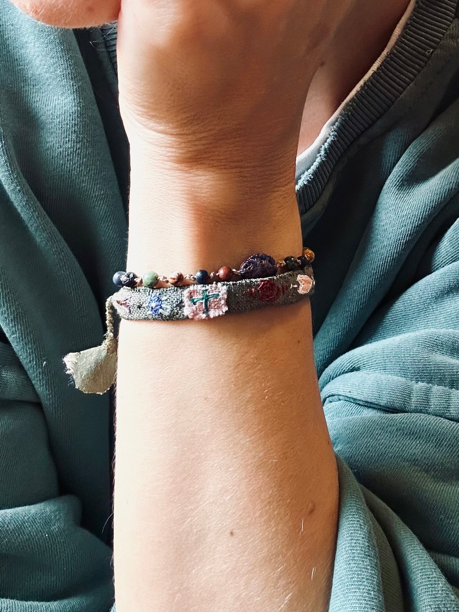 Unikatowa bransoletka YUMA to połączenie rzemiosła, natury i elegancji, której nie znajdziesz nigdzie indziej. Każda bransoletka została wykonana ręcznie z najwyższej jakości naturalnych materiałów, takich jak len, wełna, jedwab, aksamit, kamienie szlachetne, szklane koraliki, nici jedwabne oraz sznurki i inne nici, co nadaje im niepowtarzalny charakter.
