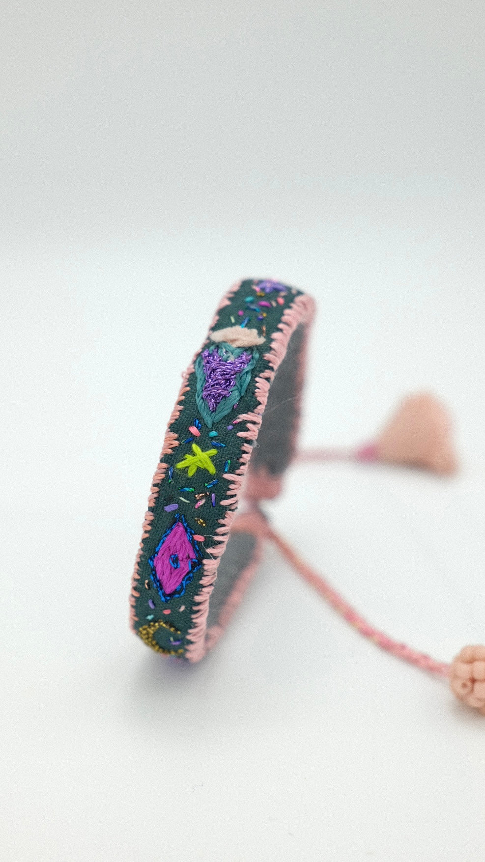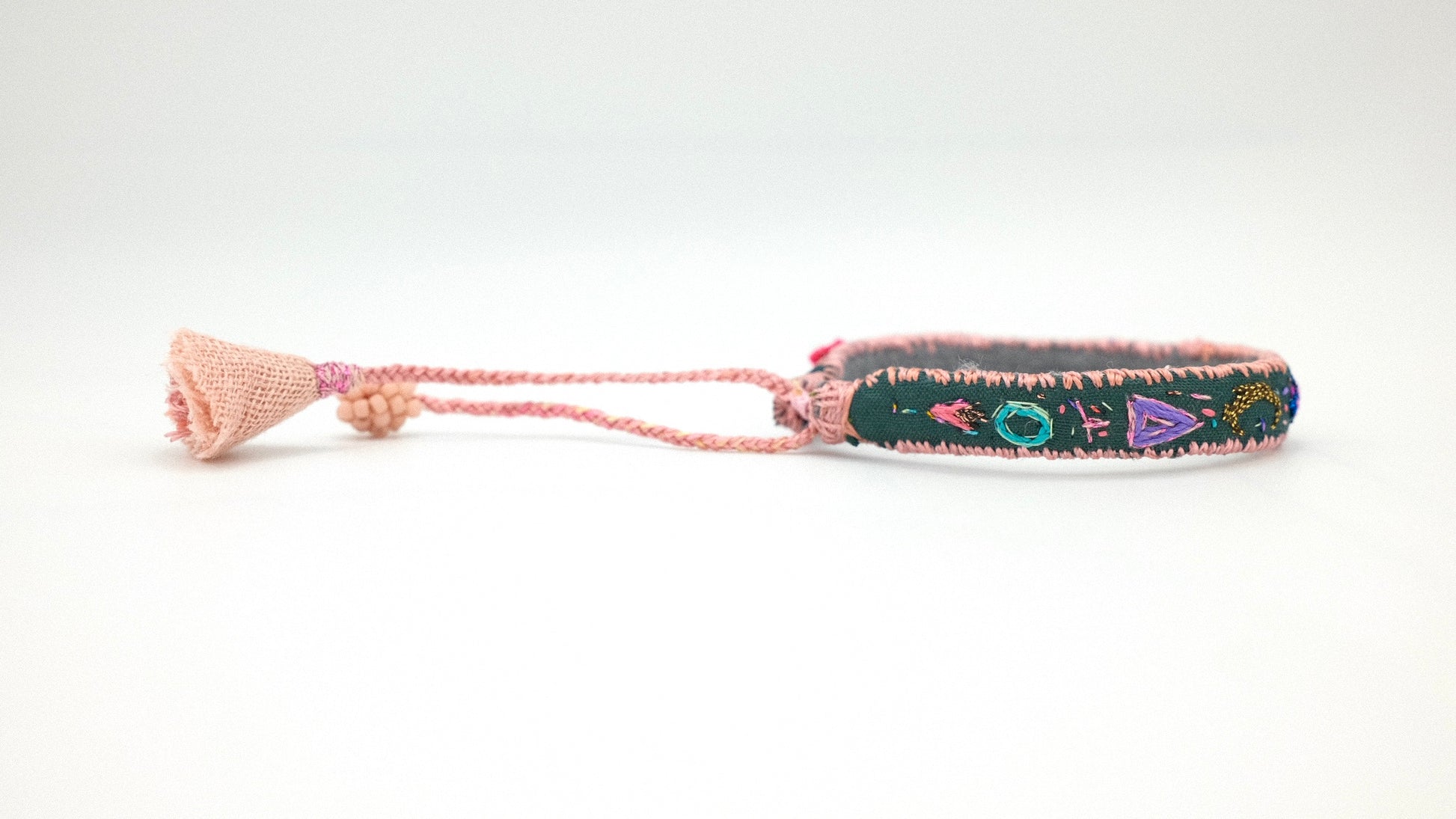 Unikatowa bransoletka to połączenie rzemiosła, natury i elegancji, której nie znajdziesz nigdzie indziej. Każda bransoletka została wykonana ręcznie z najwyższej jakości naturalnych materiałów, takich jak len, wełna, jedwab, aksamit, kamienie szlachetne, szklane koraliki, nici jedwabne oraz sznurki i inne nici, co nadaje im niepowtarzalny charakter.