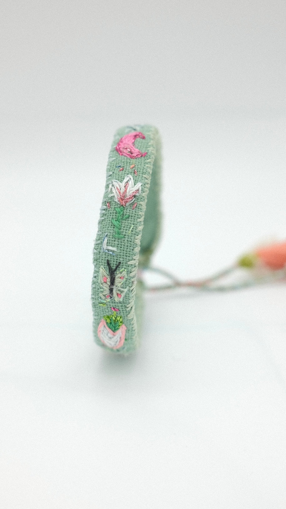 Unikatowa bransoletka LILi to połączenie rzemiosła, natury i elegancji, której nie znajdziesz nigdzie indziej. Bransoletka została wykonana ręcznie z najwyższej jakości naturalnych materiałów, takich jak len, wełna, nici jedwabne oraz sznurki i inne nici, co nadaje im niepowtarzalny charakter.