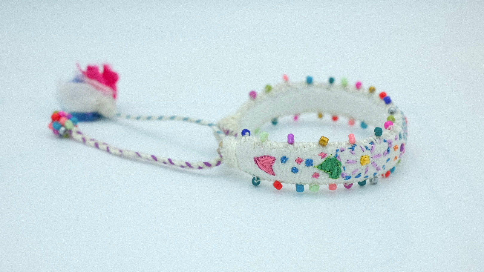 Unikatowa bransoletka KARMINA to połączenie rzemiosła, natury i elegancji, której nie znajdziesz nigdzie indziej. Bransoletka została wykonana ręcznie z najwyższej jakości naturalnych materiałów, takich jak len, wełna, nici jedwabne oraz sznurki i inne nici, co nadaje im niepowtarzalny charakter.