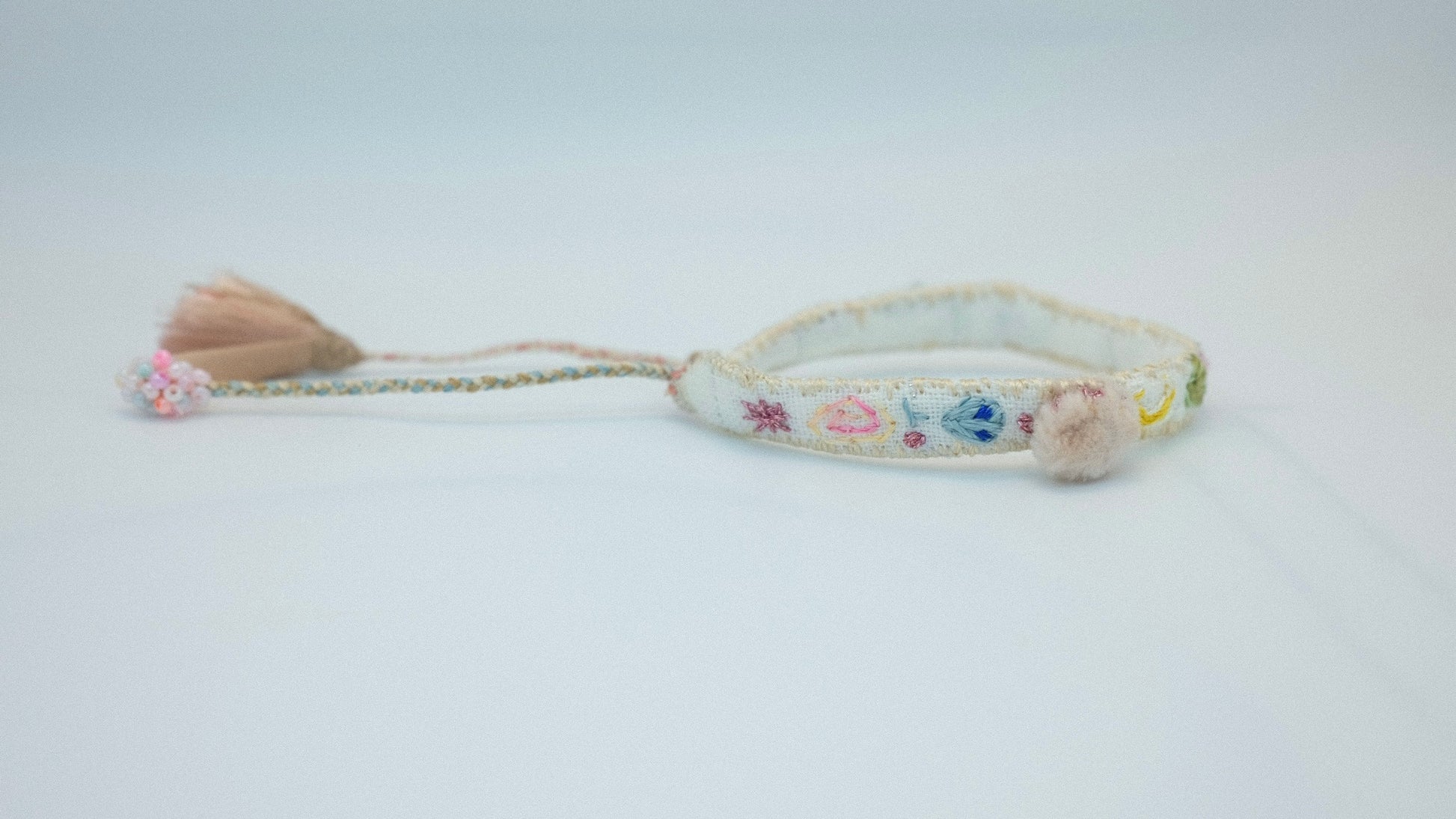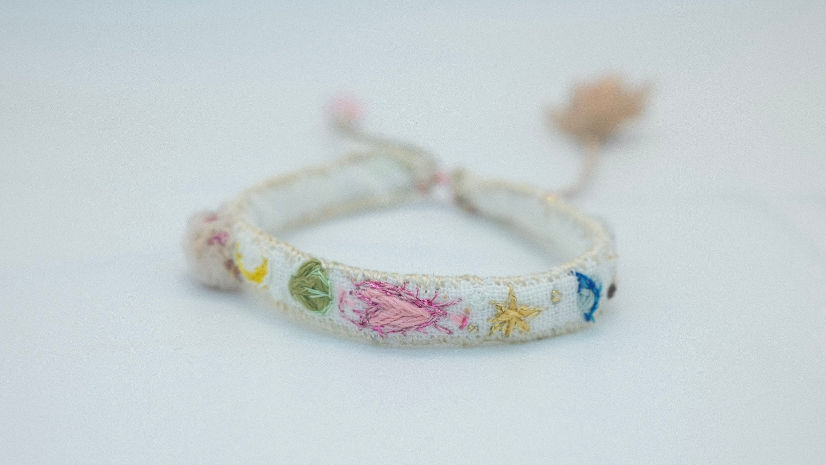 Unikatowa bransoletka OLA to połączenie rzemiosła, natury i elegancji, której nie znajdziesz nigdzie indziej. Każda bransoletka została wykonana ręcznie z najwyższej jakości naturalnych materiałów, takich jak len, wełna, jedwab, aksamit, kamienie szlachetne, szklane koraliki, nici jedwabne oraz sznurki i inne nici, co nadaje im niepowtarzalny charakter.