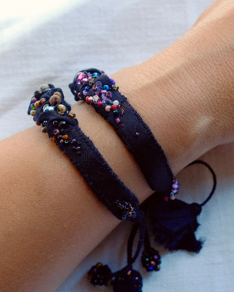 Unikatowa bransoletka to połączenie rzemiosła, natury i elegancji, której nie znajdziesz nigdzie indziej. Każda bransoletka została wykonana ręcznie z najwyższej jakości naturalnych materiałów, takich jak len, wełna, jedwab, aksamit, kamienie szlachetne, szklane koraliki, nici jedwabne oraz sznurki i inne nici, co nadaje im niepowtarzalny charakter.