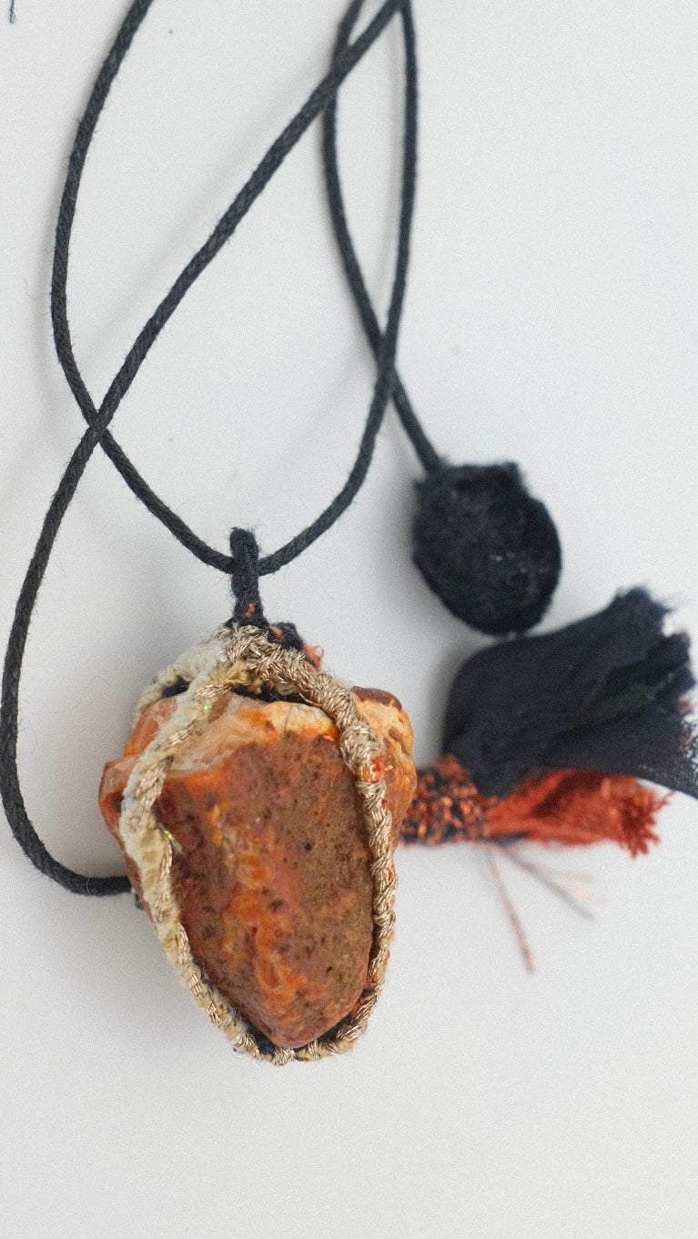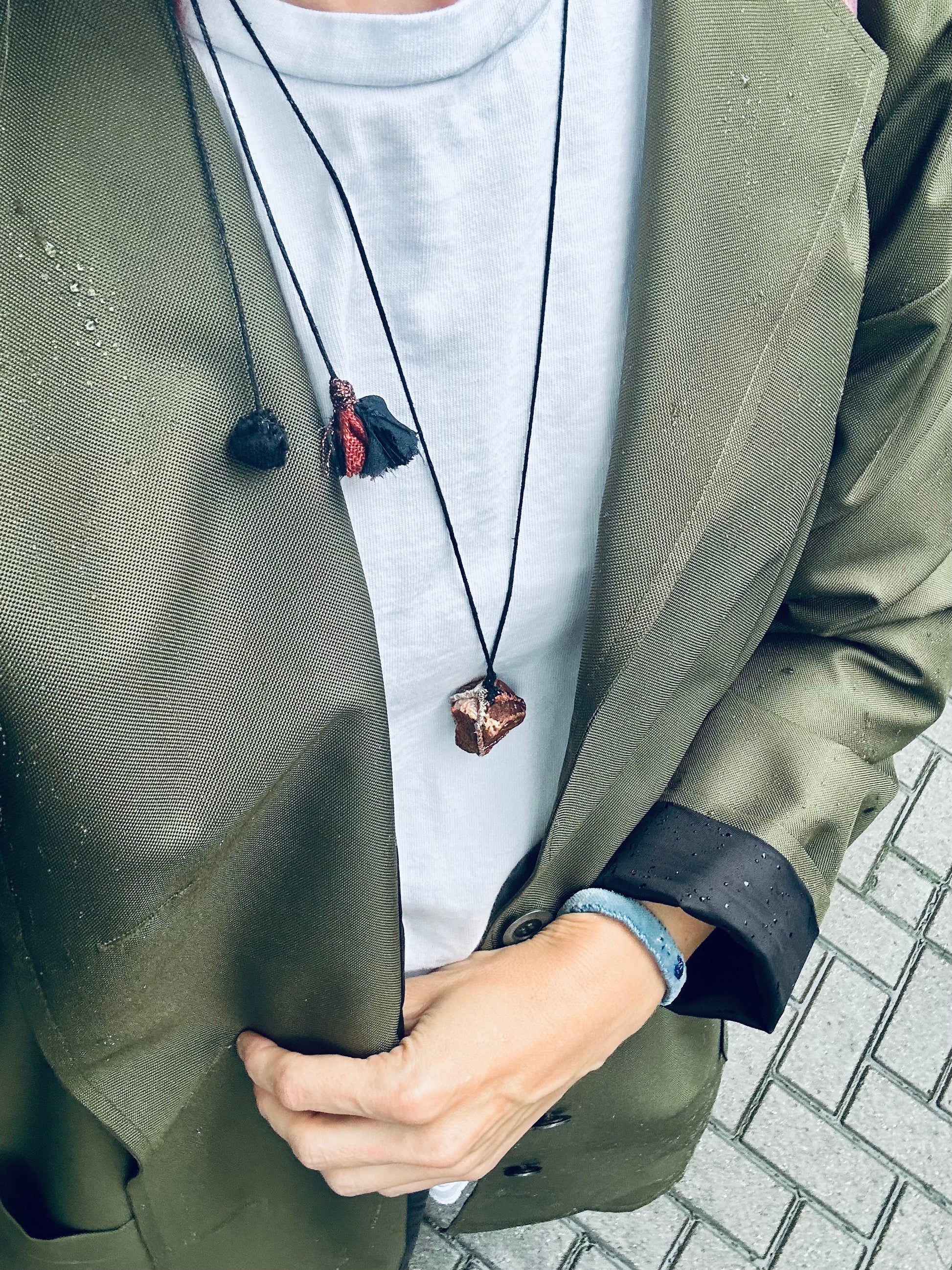 Ten naszyjnik na rzemieniu to coś więcej niż zwykła biżuteria – to małe dzieło sztuki, stworzone z sercem. Zawieszony na nim kamień naturalny przyciąga uwagę swoim niepowtarzalnym pięknem, a każdy detal ręcznych zdobień opowiada historię. Dzięki regulowanej długości możesz nosić go tak, jak lubisz – blisko szyi lub luźniej, w zależności od nastroju czy stylizacji. To idealny dodatek, który dodaje magii zarówno codziennym, jak i wyjątkowym momentom. Stworzony z pasją dla osób, które kochają unikatowe, ręcznie robione rzeczy pełne charakteru.